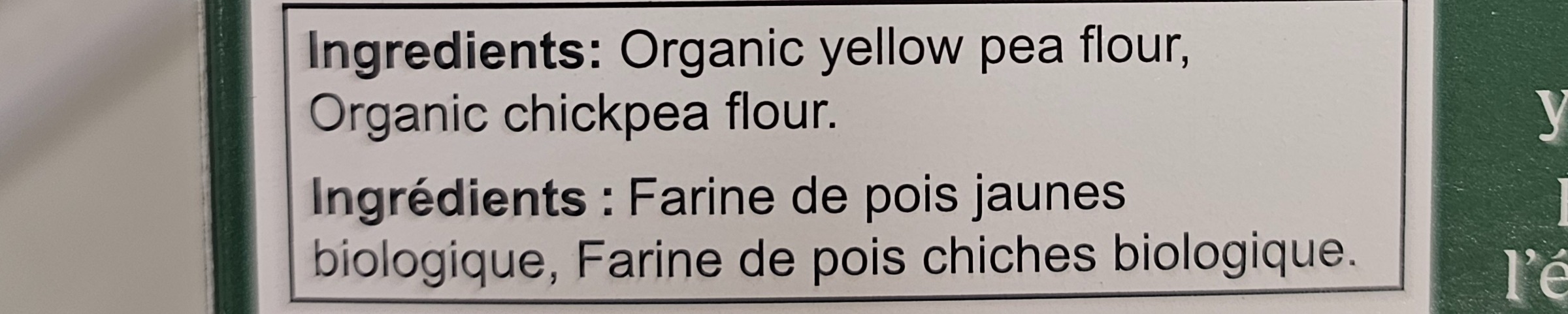 Organic yellow pea flour, organic chickpea flour